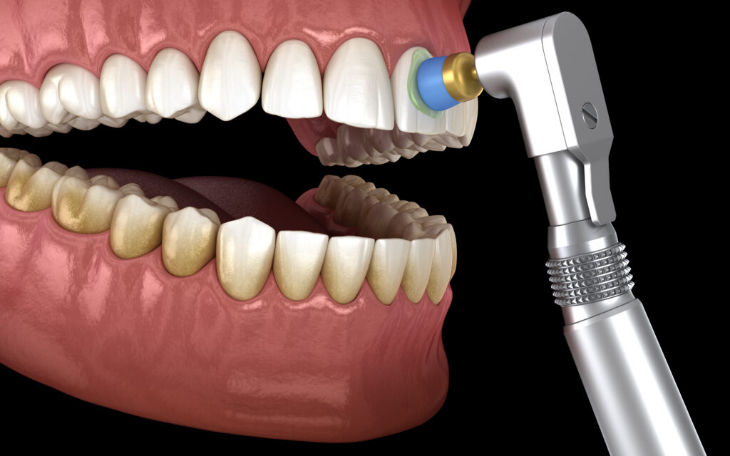 • Polishing: After scaling, your teeth will be polished to remove surface stains, leaving them smooth and bright.